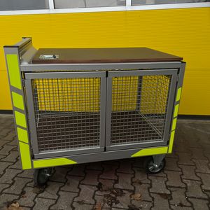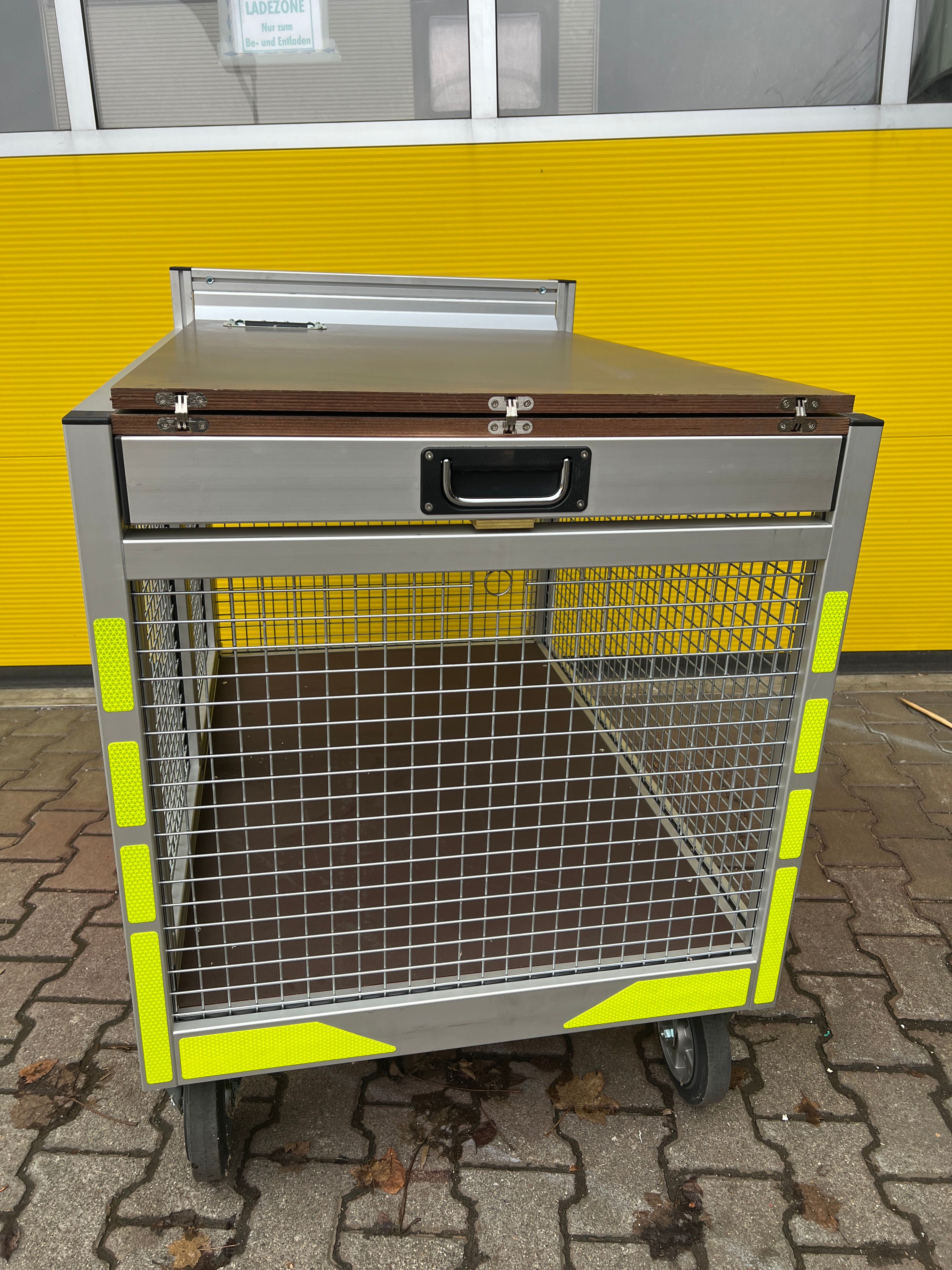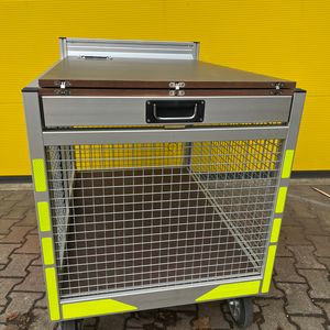 Rollcontainer Gitterbox mit aufklappbarem Tisch