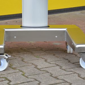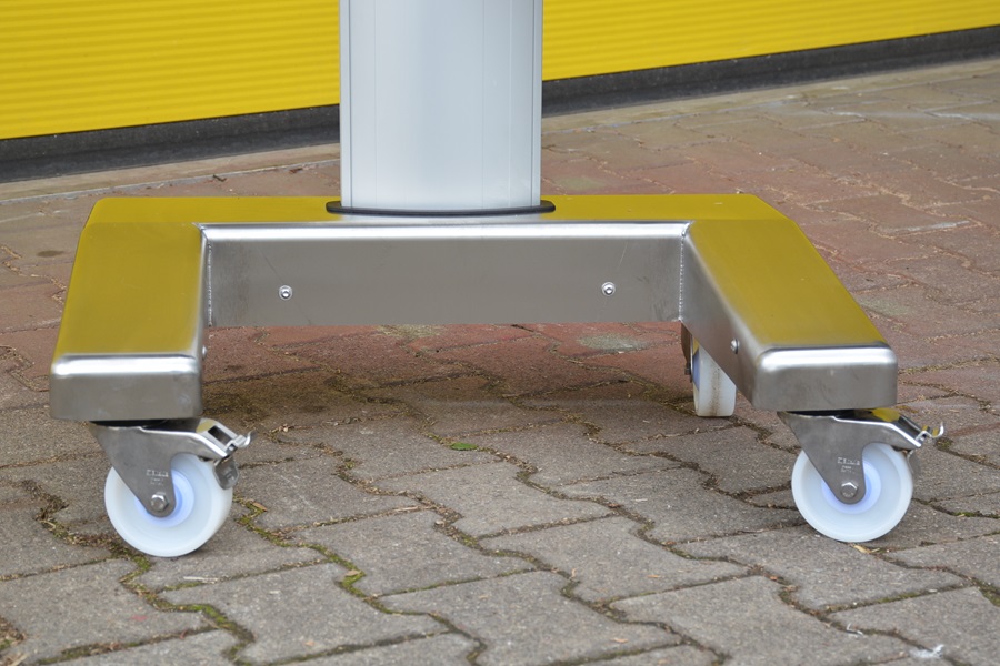 Der Medienwagen ist zudem mit hochwertigen Rädern aus POM in Weiß ausgestattet, die auf einem Edelstahlgrundkörper befestigt sind. Dadurch ist eine einfache und reibungslose Bewegung des Wagens möglich. Für eine stabile Standfestigkeit sorgt das Edelstahlfußgestell mit einem eingelegten Gewicht.